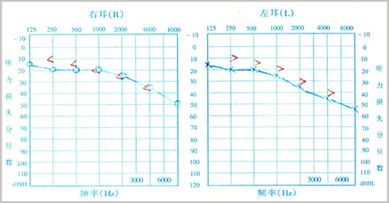 高频听损人士的听力图常被称为“下降型”听力图,这个“下降”意味着他的低频部分(低于1000Hz的声音)可能有轻微听损,甚至听力正常;但是,其高频部分(高于1000Hz的声音)则有较重的听力损失,整个听力图是下坡型的走势。从听力图我们知道的是,要想听清高频的声音,就要把高频的声音提高才行。
